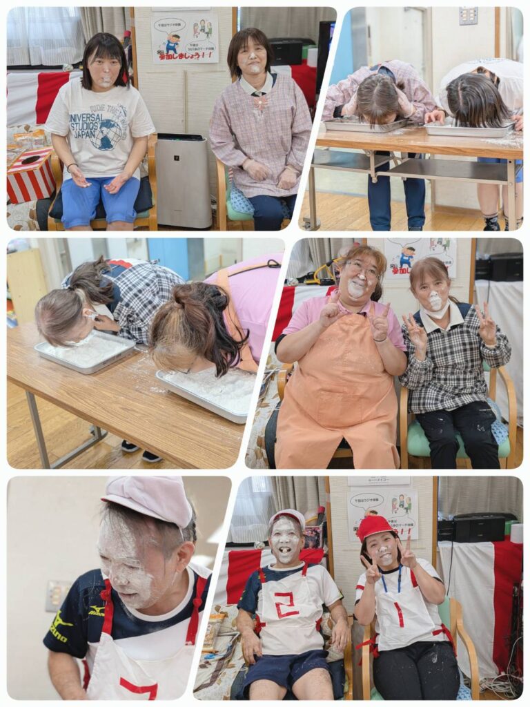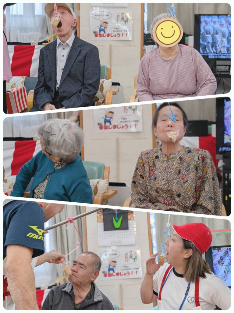昼食を挟んで、午後の部、第3競技は「職員による飴食い競争」
